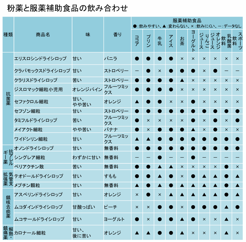 **「何に混ぜていいかは薬によって違う」**という点です。