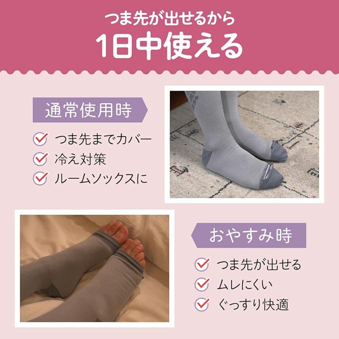 つま先までしっかり覆ってくれるので冷え対策にも最適。